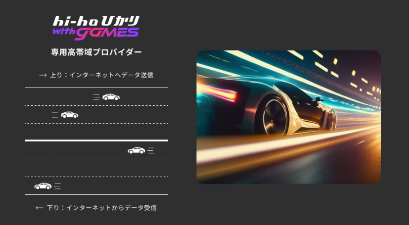 しかし、ゲーミング回線では専用帯域を設けることで、この問題を根本的に解決しています。
